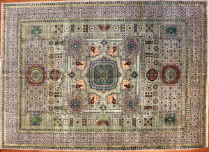 Mamluks are often filled with an array of smaller geometric motifs, surrounding a central star medallion, this produces a kaleidoscope appearance. There is debate as to the origins of the Mamluk pattern. Most scholars attribute Egypt as the original Mamluk inventor, albeit having later Persian and Turkish influences. Mamluks tend to use wool with high oil content to create a soft touch and easy to clean surface.